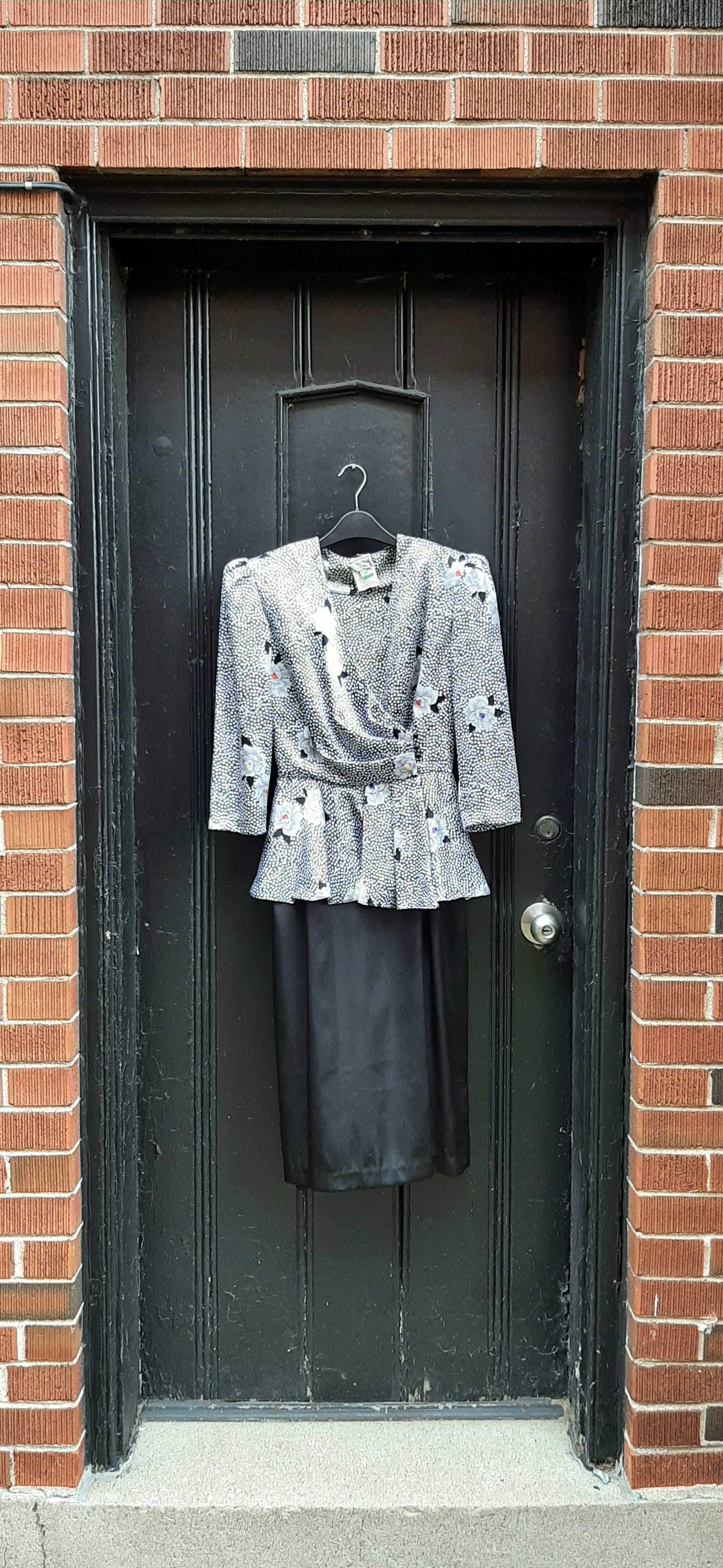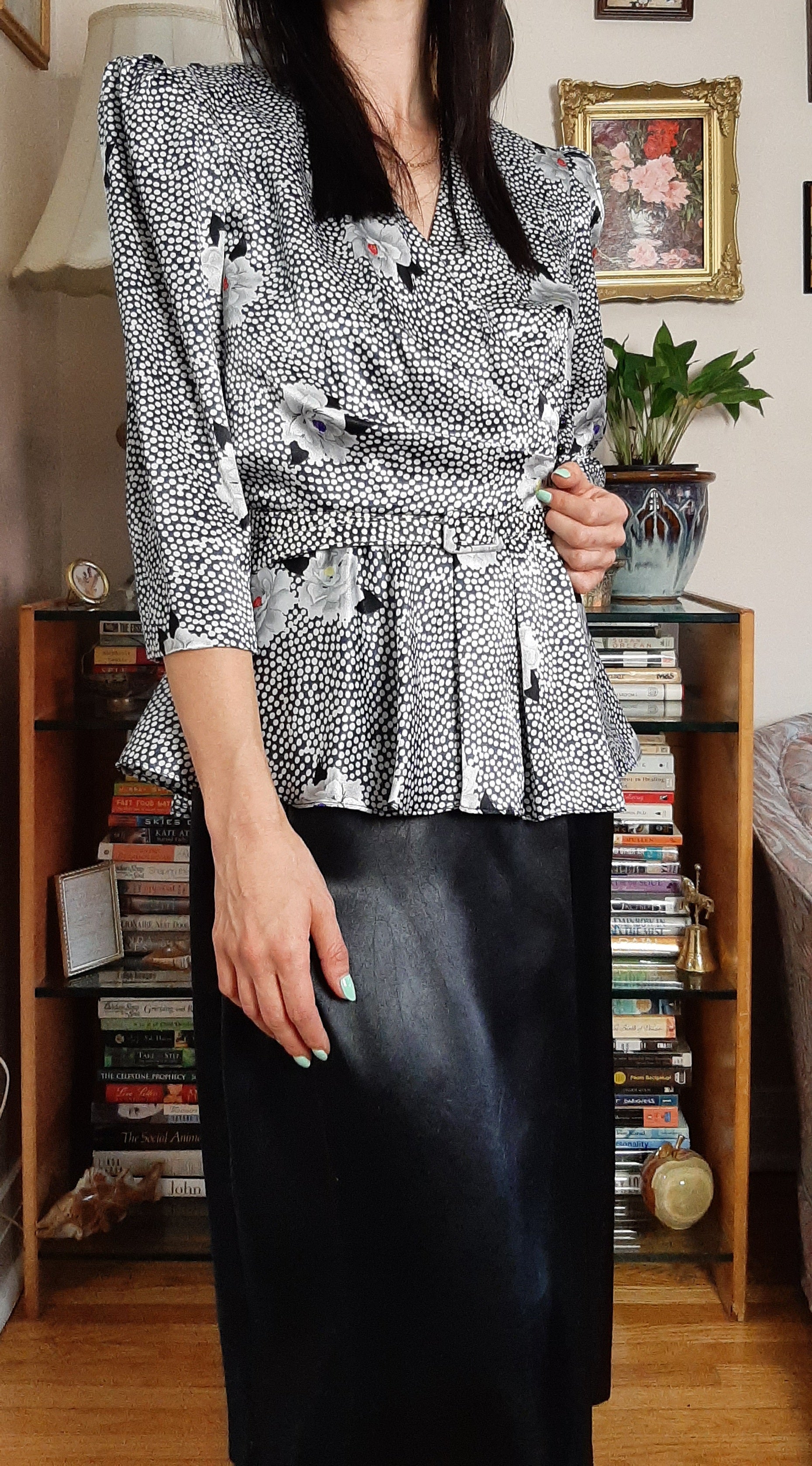 Retro 80s number complete with shoulder pads and a peplum style top, and matching belt.