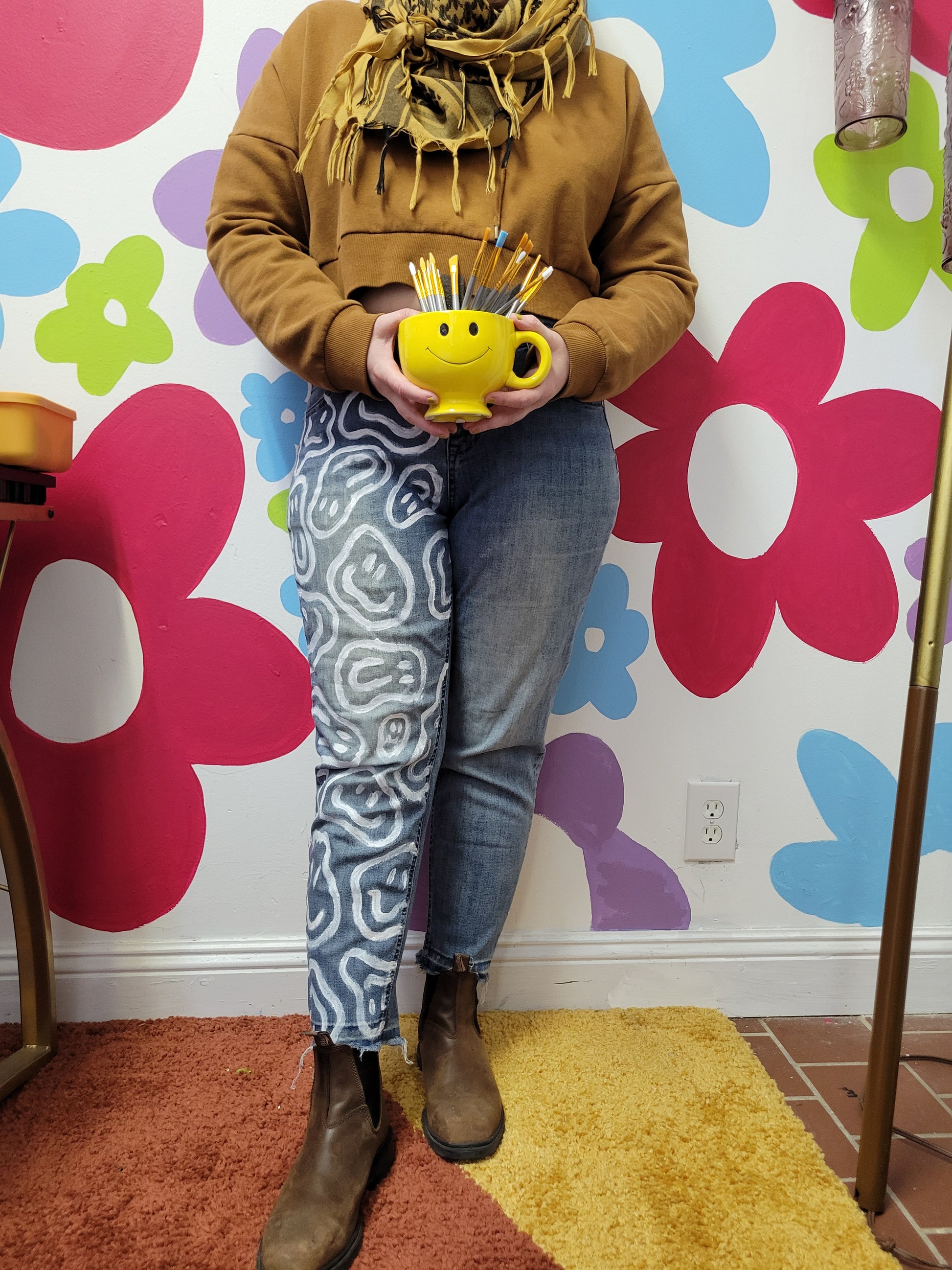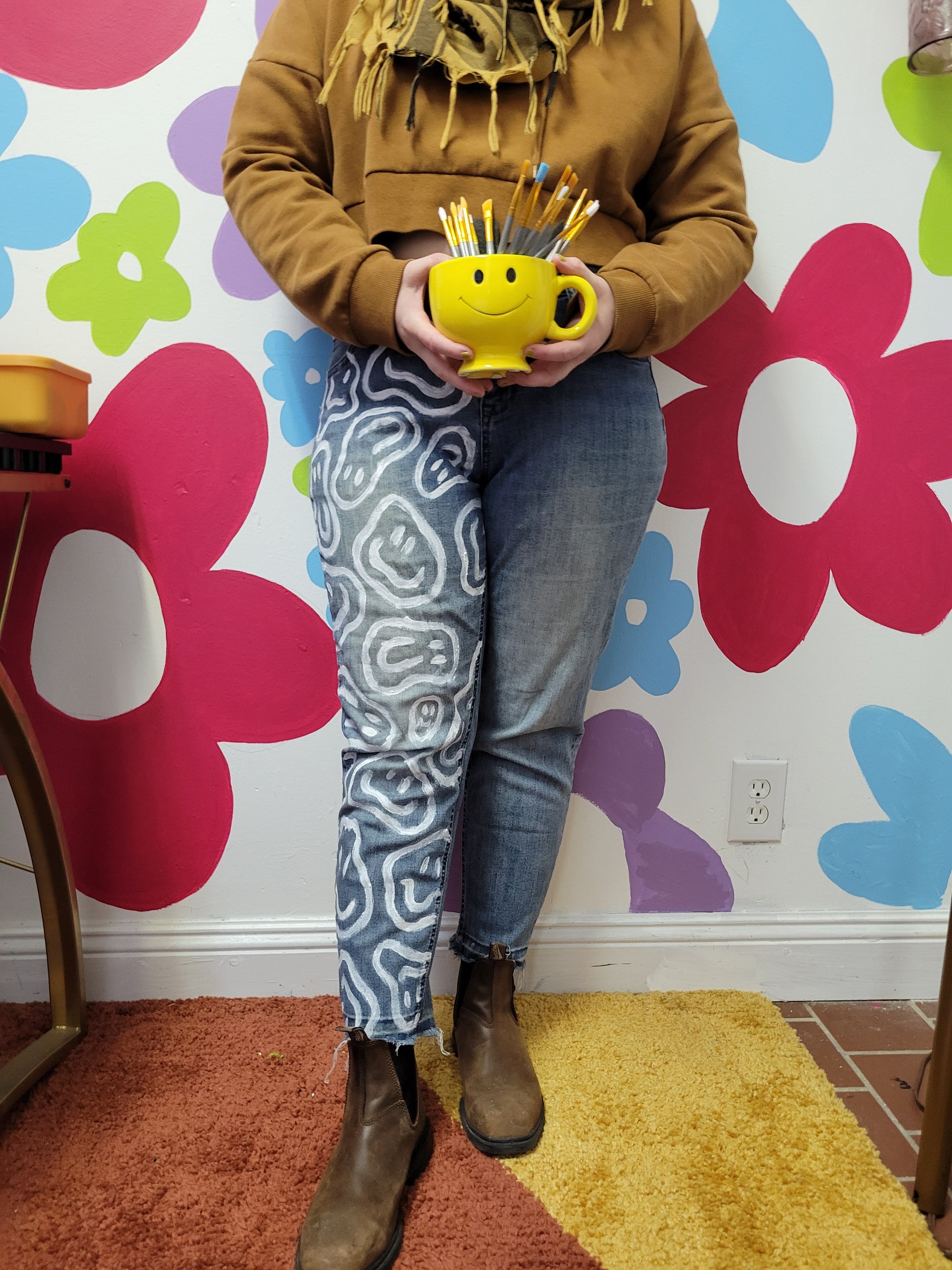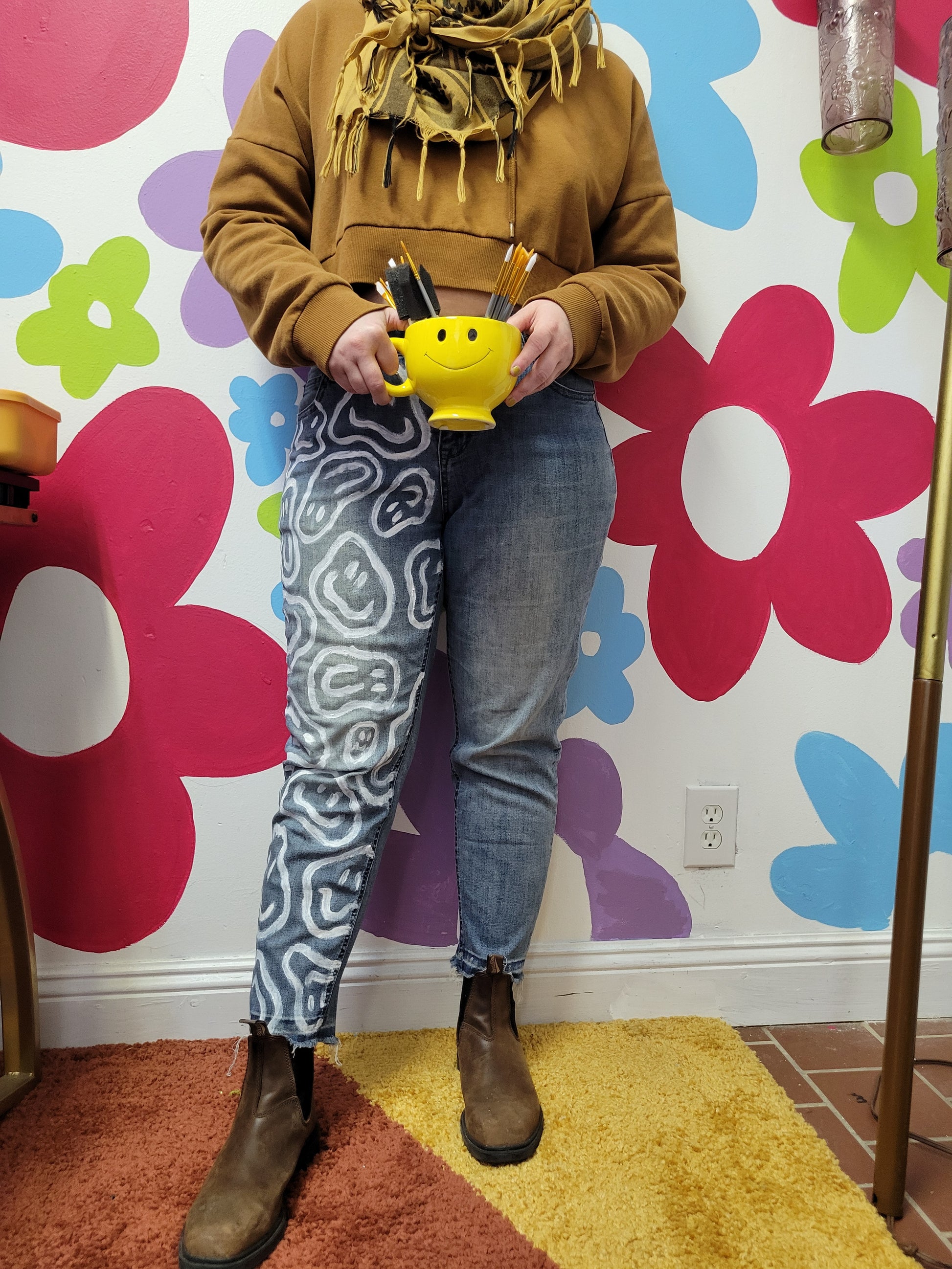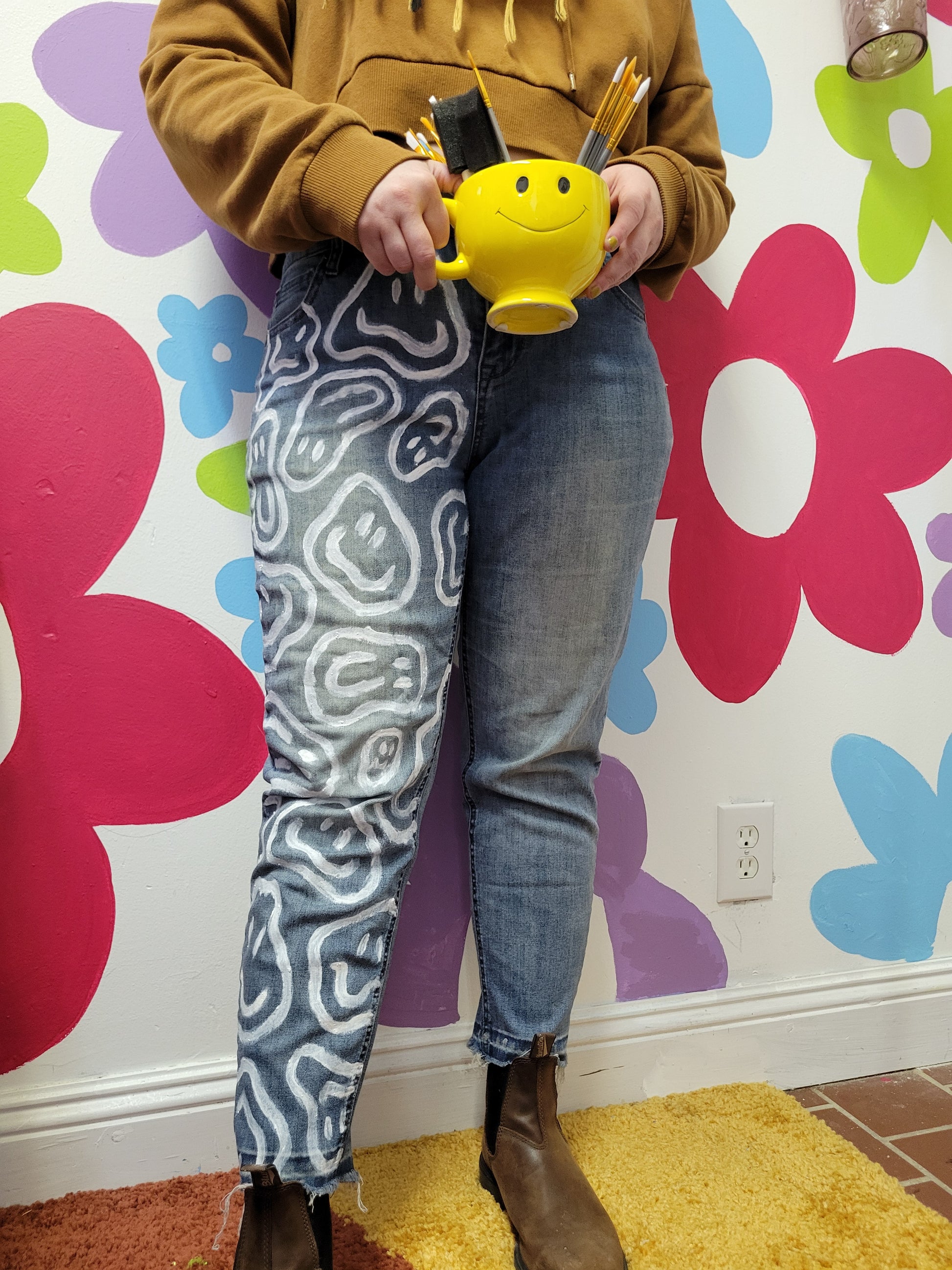 Happy Drippy hand painted denim by @its.bad.ritual😀