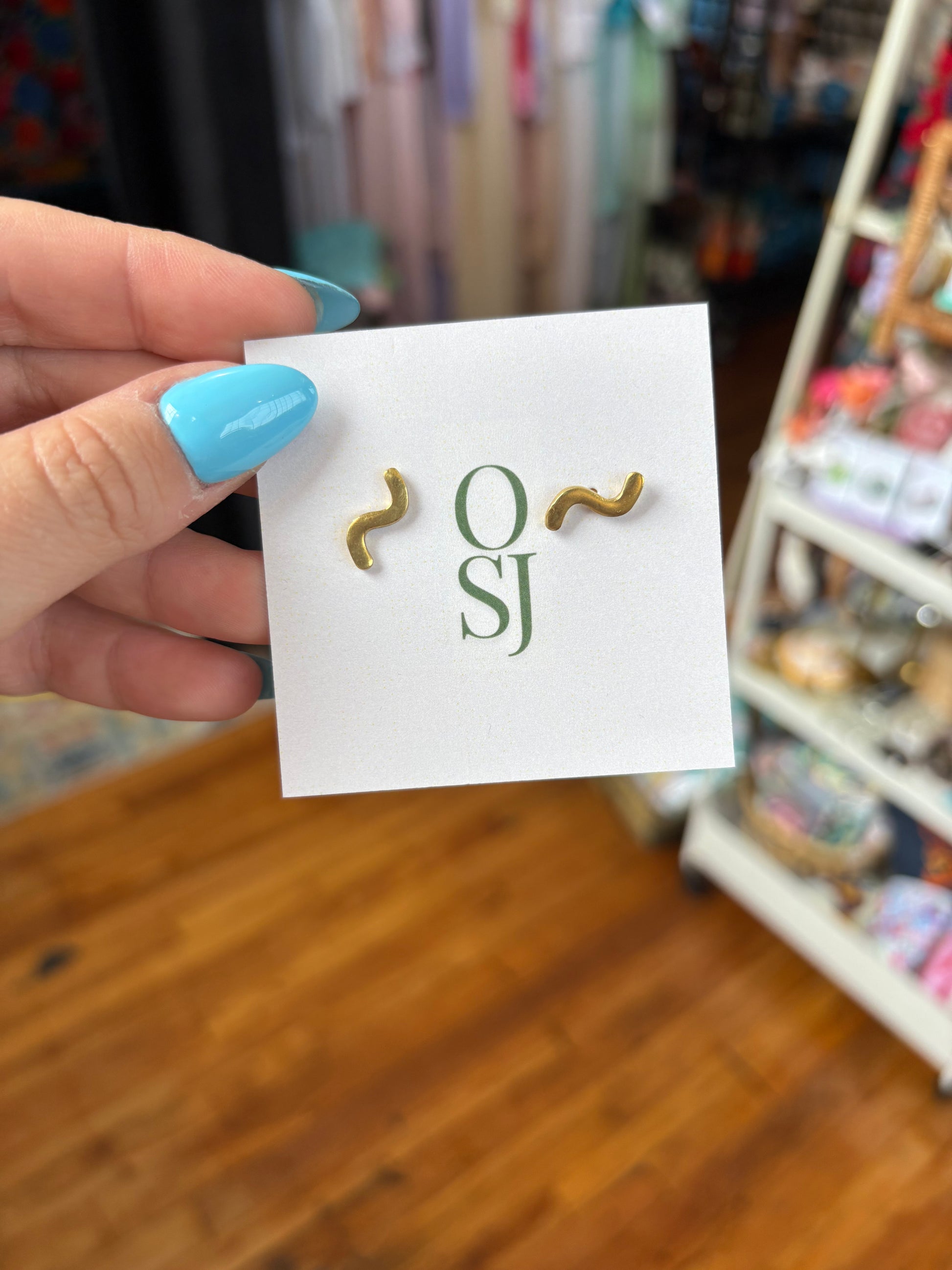 A collection of fashionable 100% brass stud earrings from Olive St Jewelry out of Manitoba