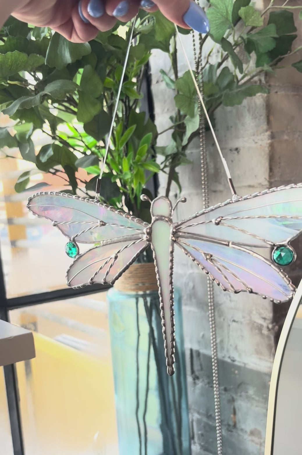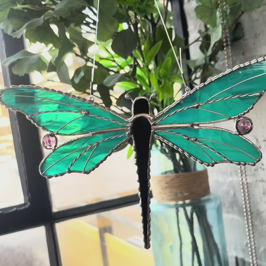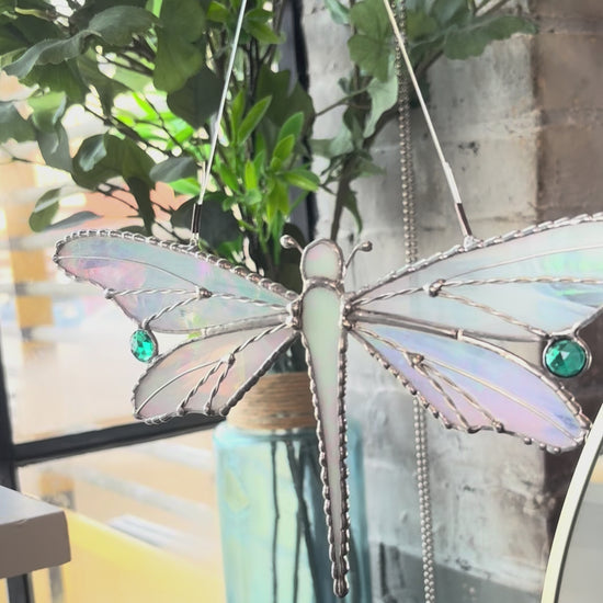 Available in Iridescent White and Teal these dragonflies measure 9" wide and 5" tall