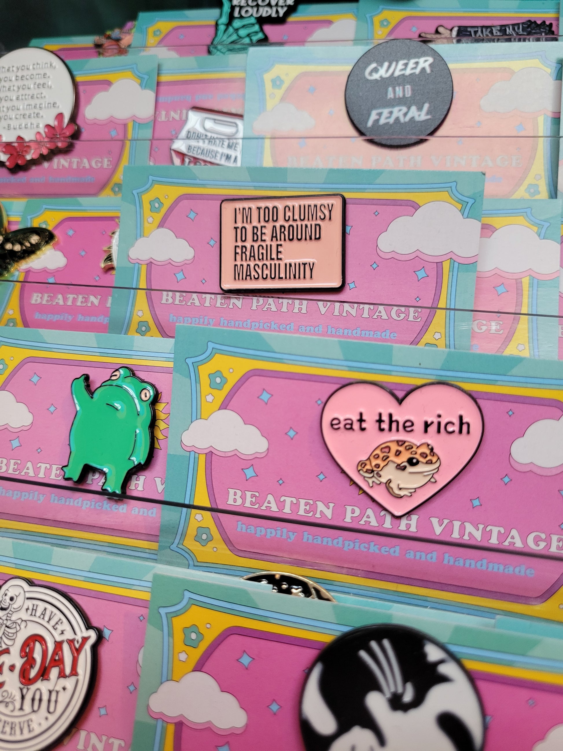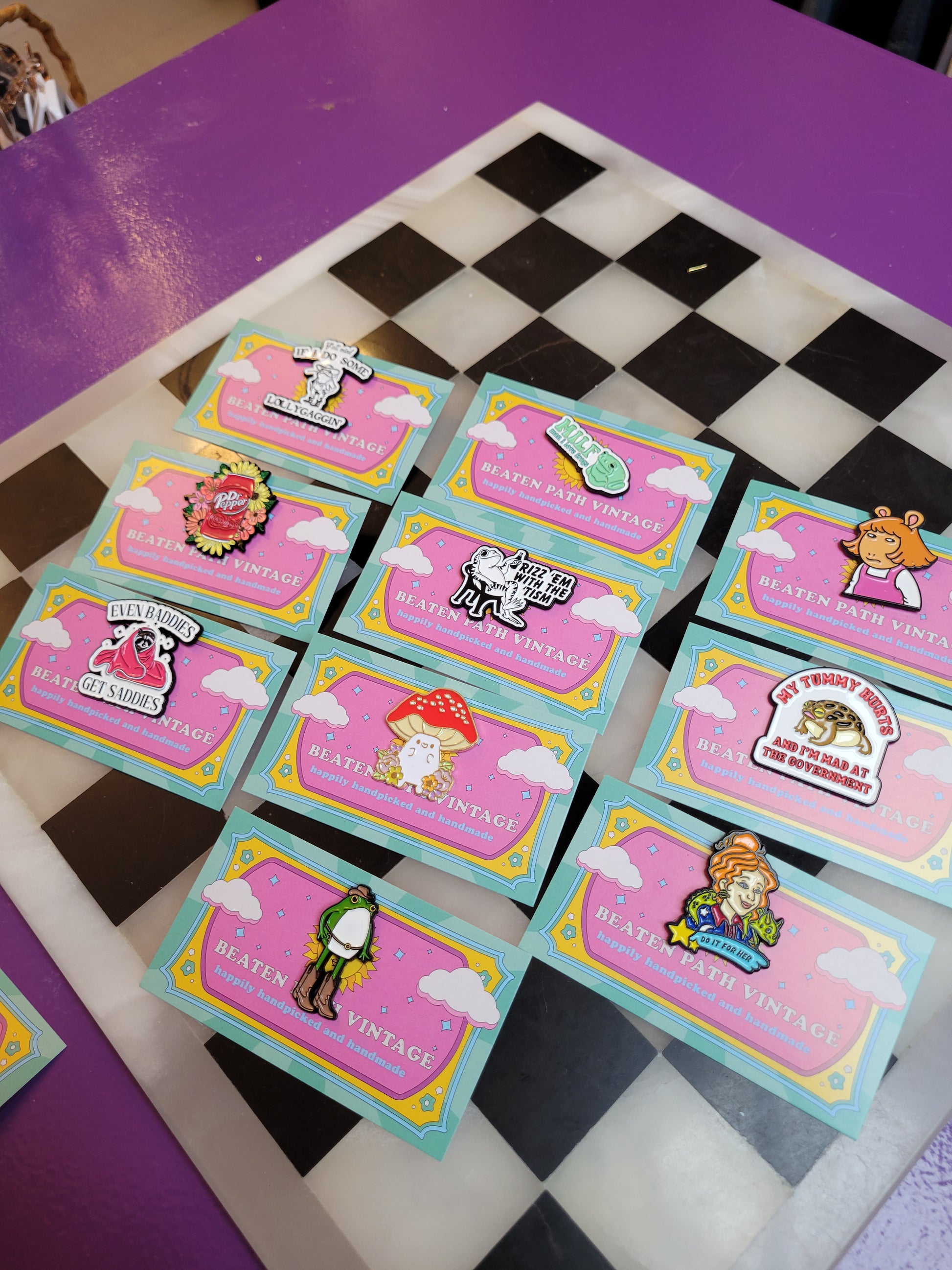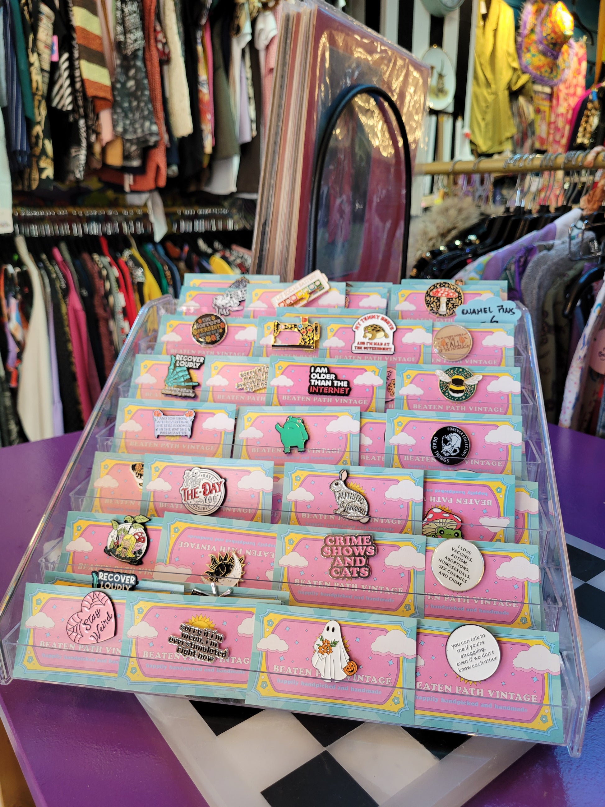 Curated by @beaten.path.vintage. new styles and designs always arriving in store, let me pick out a pin for you, and I'll base it off your other purchases vibes💖